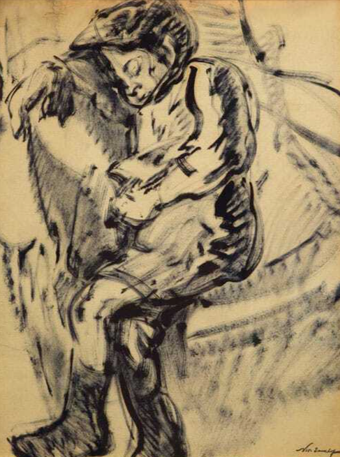 Николай Тархов "Мальчик уснувший в кресле" 1910 г., бумага на холсте, тушь, кисть, 59 Х 49 см